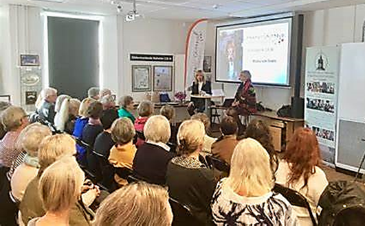 Efter Olle Bergs föreläsning avtackades han av Sällskapets ordförande Anders Krafft med ett ex. av boken ”Sörmländska Olympier.”