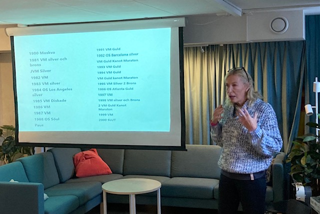 Hon redogjorde både för sitt arbete på Kanotgymnasiet och sin tid som en av världens absolut bästa kanotister. Susanne pratade också om vad ”Det stora kanotbråket” var och vad det berodde på. Hon berättade också om sitt möte med Astrid Lindgren.